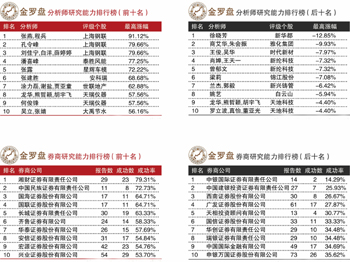 中投證券則錯看4只股票,推薦后均遭遇股價“大變臉”,股價一路下跌。中投證券批發(fā)和零售貿(mào)易分析師徐曉芳錯看新華都,推薦后便遭遇新華都股價跌停。徐曉芳最終因為新華都短線測評12.85%的跌幅,在該月的金羅盤分析師研究能力排名中位列倒數(shù)第一。