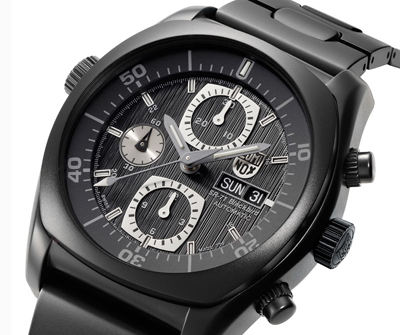 Valjoux全表瑞士制造,全新設(shè)計的黑色精鋼表鏈和子表盤幀的形狀,讓人回想起了黑鳥偵察噴氣機的外觀和精神。此外,此表采用Valjoux自動計時瑞士機芯,保證在極限環(huán)境下都能走時無誤,并配備100米防水度、星期與日期顯示窗口及計時功能。