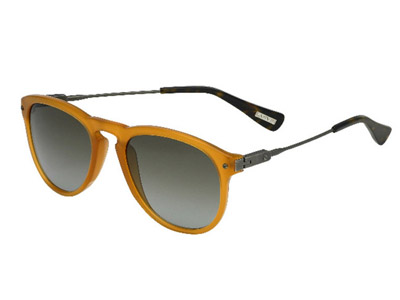 這款無論男女均適合佩戴的太陽眼鏡反映出系列的工業(yè)化及復(fù)古外型。渾圓的醋酸纖維鏡框的最大特色為它的鑰匙孔形鼻梁架。鉸合部具有螺絲細(xì)節(jié),金屬柄腳則進(jìn)行造舊處理。配備漸變鏡片。