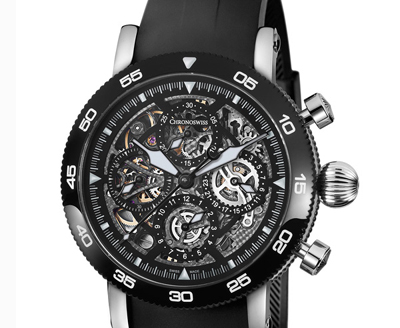Chronoswiss(瑞寶)在2014年巴塞爾鐘表展首度推出鏤空版本運(yùn)動(dòng)型計(jì)時(shí)腕表,無隔阻直視腕表計(jì)時(shí)核心