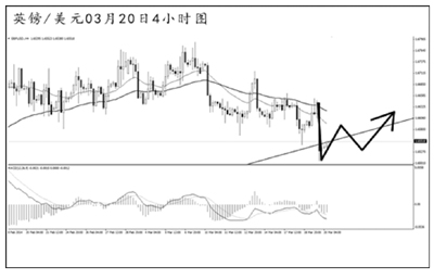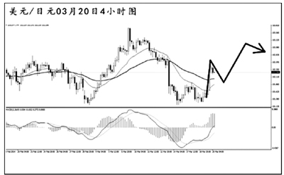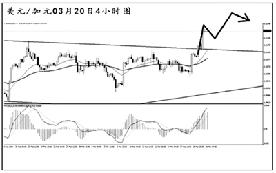美元兌瑞郎短線發(fā)起強(qiáng)勁反彈。4小時(shí)圖MACD多頭動(dòng)能充盈,目前需重點(diǎn)關(guān)注下降趨勢(shì)線的阻力位0.8850一線,若能升破此位置,匯價(jià)還將展開(kāi)更為強(qiáng)勁的上攻。