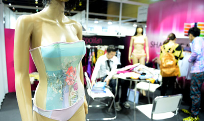 香港國際內(nèi)衣泳裝展1日在香港會(huì)展中心舉行,展覽主題為“身體、心靈和精神的調(diào)和”。圖為參展商展示的塑身內(nèi)衣。