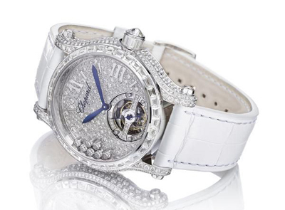 Tourbillon表款凝聚了高級珠寶工坊的精益求精和高級制表部門的巧奪天工。Happy
