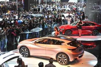 4月21日,在2014(第十三屆)北京國際汽車展覽會上,參觀車展的觀眾如潮,本次共展示車新能源車79臺,再次刷新北京車展的紀(jì)錄。記者 李文明