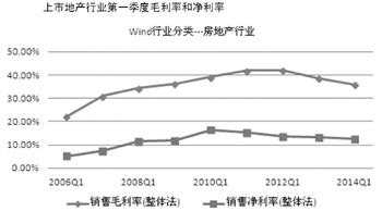 我們從近9年房地產(chǎn)行業(yè)年毛利率和凈利率以及第一季毛利率和凈利率圖可看出:從2012年第一季開始就出現(xiàn)大幅下降。隨著市場蕭條,行業(yè)融資資金更加困難,資金成本會進(jìn)一步上升,預(yù)計(jì)2014年上市房地產(chǎn)公司的毛利率和凈利率依然難有明顯回升,這將導(dǎo)致行業(yè)利潤率面臨進(jìn)一步下行壓力。