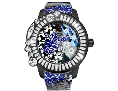 腕表不只有實用的報時作用,還有非凡的藝術(shù)價值。法國藝術(shù)水晶腕表 Galtiscopio 迦堤