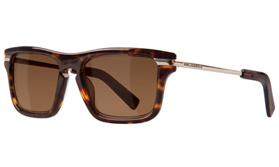 塑料配金屬的枕形眉架,營造出優(yōu)雅的線條。前鏡框兩方綴以精致的金屬裝飾,與鏡臂上簡約的品牌標志互相配合,低調(diào)中不失時尚個性。系列備有亮青銅黑色、亮銀黑色、亮青銅色及亮淺青銅色。