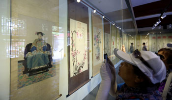 觀眾在拍攝展出的慈禧畫像。 |
