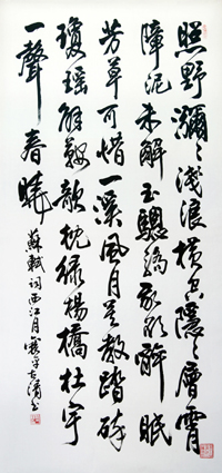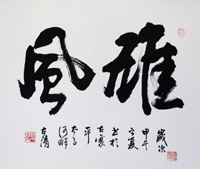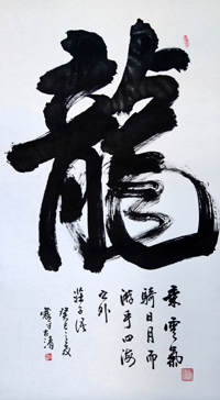 闞宇清,號(hào)古清,一九三八年生于沈陽,家世從商而重文,幼讀私塾學(xué)啟蒙之文,書法柳公權(quán),中年改臨羲獻(xiàn)、蘇米、王鐸,讀帖臨池至老不輟。生性喜游,數(shù)十年間國內(nèi)外行四十余萬里,博覽古今勝跡,摩崖石刻,謁訪名家,切磋書藝,故書中有柳之筋骨,蘇之豐潤,王鐸米芾之豪宕不羈;尤善作榜書,結(jié)體嚴(yán)謹(jǐn)、雅俗共賞,省內(nèi)寺廟匾聯(lián)、高速公路站名、商業(yè)牌匾多用其書,所參加國內(nèi)外書法大賽,皆得入選或獲獎(jiǎng);其作品在美、日、港、臺(tái)展出并被收藏。