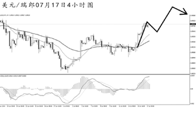美元兌瑞郎連續(xù)兩天收出實(shí)體大陽線,4小時圖多頭動能十分強(qiáng)勁,均線系統(tǒng)重新形成多頭排列。雖然短線并沒有構(gòu)筑出非常完好的次級趨勢調(diào)整,但上漲勢頭仍將延續(xù)。預(yù)計(jì)匯價小幅下調(diào)后仍將以繼續(xù)走高為主。