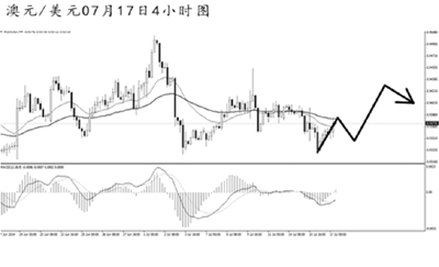 英鎊兌美元沖高后強(qiáng)力回落。4小時圖MACD發(fā)生了角度明顯的頂背離信號,多頭動能明顯減弱。再創(chuàng)新高之前,英鎊仍面臨下行風(fēng)險。如欲入場做多,必須等待匯價升破1.7200之后再做打算。