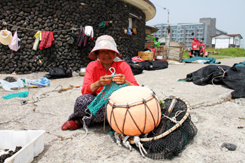 沿“偶來小路”漫步,不知會遇見怎樣的景致,時時充滿驚喜。行至“大海牧場”,偶遇潛水歸來的海女,三五成群席地而坐,邊處理新鮮的海貨,邊閑話家常?倳泻E疅崆榈匮埑陨蠋卓秒鐫n的裙帶菜或者剛剛撈上來的鮑魚,是最原始的海的滋味。