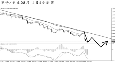 英鎊兌美元上探趨勢線阻力,隨后強(qiáng)力暴跌。從4小時圖看,匯價下跌斜率加大,再度遠(yuǎn)離了趨勢線的阻力,預(yù)計短線面臨一定的上調(diào)壓力,但整體走弱的趨勢不易發(fā)生改變。