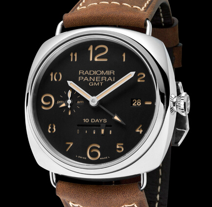 枚。此款腕表外型優(yōu)雅的枕型表殼以拋光精鋼制成;簡約的黑色三明治表盤上以夜光阿拉伯數(shù)字標示小時,并設有日期顯示、10日線性動力儲存顯示,九點鐘方位設有小秒盤,同時設有晝夜顯示指針;表盤中央除時針和分針,還有旅游人士必備第二時區(qū)指針。表盤上的所有元素,均涂有淡褐色Super-LumiNova.。腕表采用復古真皮表帶,搭載沛納海位于瑞士諾沙泰爾(Neuchatel)表廠自行研發(fā)的自動上鏈機芯P.2003。