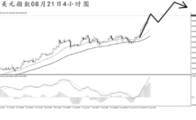 盡管耶倫此番在央行年會上的發(fā)言很有可能繼續(xù)“打太極”,但市場對美國經(jīng)濟的樂觀預期仍然在推高美元。美元指數(shù)經(jīng)過兩周的盤整再度強力沖高。從日線圖上看,價格連續(xù)收出實體陽線,多頭動能重新占據(jù)優(yōu)勢。上方強阻力在84.70,美元指數(shù)仍有較為廣闊的上漲空間。從4小時圖上看,MACD已經(jīng)進入到多頭動能充盈的階段,均線系統(tǒng)形成多頭排列。短線上漲斜率陡峭,預計美元指數(shù)小幅下調(diào)后仍然將以沖高走勢為主。
