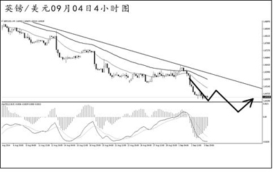 歐元兌美元在創(chuàng)出新低后持續(xù)盤整。從日線圖上看,下降趨勢線的壓制作用完好,匯價斜率陡峭,逐步遠離此線,后市發(fā)生上調(diào)的風(fēng)險仍然較大。4小時圖均線系統(tǒng)壓制排列,MACD已經(jīng)發(fā)生了角度明顯的底背離信號。短線沒有構(gòu)筑出良好的次要節(jié)奏調(diào)整,后市面臨一定的反彈壓力。在匯價再創(chuàng)新低之前,做空需謹慎。