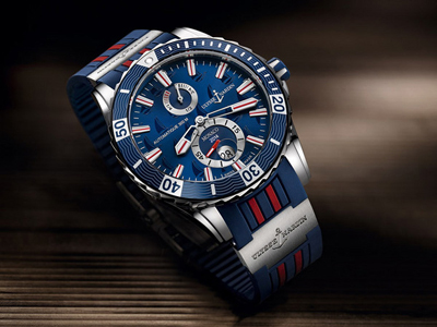 摩納哥航海潛水限量腕表的所有細(xì)節(jié)都能營(yíng)造出瑞士勒洛克制表大師身處深海世界的奇幻意境。2點(diǎn)鐘位置清晰地展示瑞士雅典表船錨標(biāo)志:藍(lán)色面盤飾有帆船圖案,而計(jì)時(shí)外圈上則配有波紋圖案。堅(jiān)固的表背上刻有一只船,外圍鐫刻著「Conquer