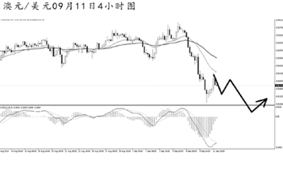 澳元兌美元短線下跌的力度無比強(qiáng)勁,均線系統(tǒng)重新形成空頭排列,MACD顯示下跌動(dòng)能占據(jù)明顯的優(yōu)勢(shì)。短線匯價(jià)發(fā)生了一定程度的反彈,但并沒有改變整體的下跌趨勢(shì),目前可關(guān)注道氏高點(diǎn)0.9215,只要此點(diǎn)位不被升破,澳元仍有繼續(xù)下行的動(dòng)力。