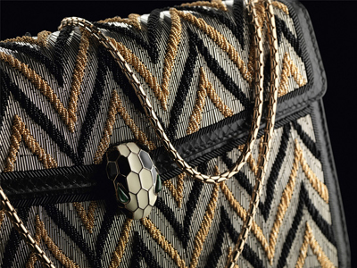 SERPENTI系列本季帶來了全新的蛇鱗設(shè)計(jì),并搭配以直線框、頂部手柄及現(xiàn)代、建筑風(fēng)格的廓型,將女人與她的手袋更緊密地結(jié)合在了一起。這樣的設(shè)計(jì)使手袋在手感及多元功用方面兼而備之,可手挎,可肩背,可手提。