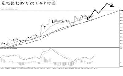 芝加哥聯(lián)儲主席埃文斯本周表示,“我們應(yīng)該在調(diào)整美國貨幣政策立場上格外耐心——即便是耐心到允許通脹略微超過我們的目標(biāo)水平也不為過,這樣會適當(dāng)平衡我們的政策目標(biāo)所面臨的風(fēng)險。”在此之前,紐約聯(lián)儲主席杜德利和明尼阿波利斯聯(lián)儲主席柯薛拉柯塔曾警告稱,在確信美國經(jīng)濟能夠經(jīng)受住更高借貸成本所帶來的影響之前,美聯(lián)儲不應(yīng)該調(diào)整利率。杜德利和埃文斯兩人均表達了對通脹率過低的擔(dān)憂,并提到1937年美聯(lián)儲收緊貨幣政策削弱了經(jīng)濟從大蕭條中復(fù)蘇勢頭的案例。美聯(lián)儲自2008年12月以來一直把基準(zhǔn)利率維持在接近零的水平。最近的報告顯示,美國經(jīng)濟朝著美聯(lián)儲制定的完全就業(yè)和價格穩(wěn)定的目標(biāo)邁進的步伐有所放緩。8月份非農(nóng)就業(yè)人數(shù)增幅從前一個月的21.2萬人減少至14.2萬人。通脹率已有兩年多的時間一直處于美聯(lián)儲制定的2%的目標(biāo)水平之下?卵滤硎荆A(yù)計未來四年通脹率將維持在2%的美聯(lián)儲目標(biāo)水平以下。不過,周三公布的美國8月新屋銷售數(shù)據(jù)激增,較上月跳增18%至年率50.4萬戶,為連續(xù)第二個月增長,且達到了2008年5月來逾六年最高水準(zhǔn),這是美國經(jīng)濟仍能保持較強勁增長的新證據(jù)。因此,美元指數(shù)短線繼續(xù)沖高。日線圖上看,上升趨勢線保持完好的支撐效果。上方的大級別阻力84.70已被升破,美元指數(shù)將上漲空間徹底打開。4小時圖均線系統(tǒng)多頭排列,雖然MACD發(fā)生了角度明顯的頂背離信號,但由于趨勢線未被跌破,預(yù)計美元指數(shù)面臨一定的下調(diào)風(fēng)險,但后市仍將保持上漲的態(tài)勢。