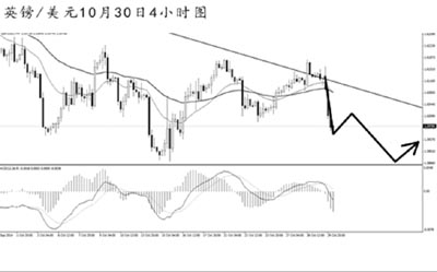 歐元兌美元反彈過后再度大幅下跌。歐元的震蕩仍在延續(xù),目前匯價即將挑戰(zhàn)1.2605的道氏低點支撐,跌破后方可向1.2500發(fā)起沖擊。短線的跌勢十分迅猛,MACD顯示空頭動能強勁,預(yù)計歐元小幅調(diào)整之后將繼續(xù)以走弱為主。
