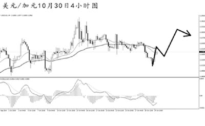 美元兌加元探底后強力回升。從4小時圖上看,目前多頭力度有所暴發(fā),但主趨勢仍然向下。最近一條上升趨勢線的支撐已被跌破,短線匯價有繼續(xù)下行的動力。在有效升破1.1255的道氏點之前,看漲仍需謹(jǐn)慎。