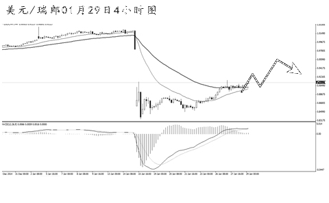 美元兌瑞郎短線緩慢上行。日線圖上最近一周K線連續(xù)收陽,價格在對此前的暴跌進行修正,MACD顯示空頭力度已明顯減弱。4小時圖均線系統(tǒng)的壓制位已被升破,匯價自最低點向上反彈已超過800點。短線匯價的上漲斜率平緩,仍有進一步走高的需求,但考慮到此貨幣最近走勢的詭異性,操作仍屬于博弈性質(zhì)。