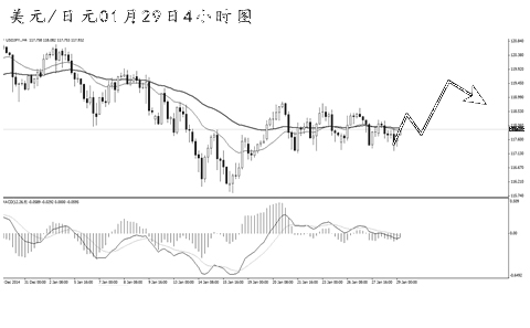 英鎊兌美元小幅沖高。從日線圖上看,匯價受制于下降趨勢線和均線系統(tǒng)的雙重壓制,道氏高點阻力在1.5265,升破之前,整體中線的跌勢保持完好。4小時圖MACD多頭動能仍然占據(jù)優(yōu)勢,此前明顯的底背離信號發(fā)揮了一定的效果。短線英鎊的上攻力度明顯減弱,匯價面臨重新走弱的風險。后市關注1.5050,跌破后方可考慮入場做空。