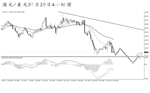澳元兌美元強力沖高后再度回落。從日線圖上看,匯價的下跌力度繼續(xù)加強,主下行趨勢延續(xù)良好。4小時圖均線系統(tǒng)保持壓制排列,整體在對前方的下跌進行次要節(jié)奏調(diào)整。由于澳元已強力跌破0.8000的整數(shù)關口位,徹底打開了月線圖級別的下跌空間。短線仍可繼續(xù)看空澳元,穩(wěn)健投資者可等待匯價再創(chuàng)新低后再行入場。
