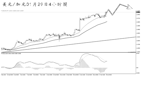 美元兌加元小幅下調(diào)后重新暴發(fā)出強勁的多頭力度。從日線圖上看,此前一周K線連續(xù)收陽,上漲斜率十分陡峭。4小時圖均線系統(tǒng)重新形成多頭排列,道氏低點支撐提高到1.2375,跌破之前,做空仍需謹慎。短線匯價再度創(chuàng)出新高,由于上方近期并沒有明顯的阻力位,預計仍有望逐步向1.3000一線發(fā)起沖擊。