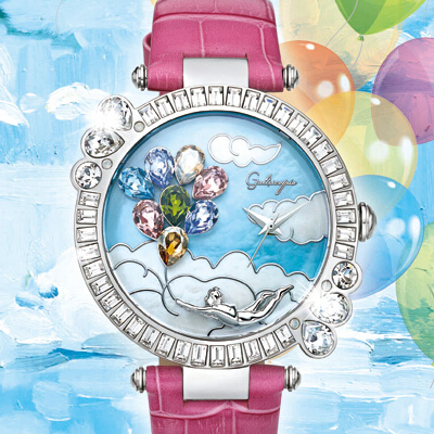 童話夢(mèng)飛翔」系列,將每個(gè)人小時(shí)候曾幻想過能像小鳥般在蔚藍(lán)天際自由翱翔的夢(mèng)想,栩栩如生的實(shí)現(xiàn)于腕表設(shè)計(jì)上。立體水晶別出心裁地幻化成七彩的小汽球,仿如伴您一起游歷浪漫的花都,遨游藍(lán)天白云的優(yōu)雅景致。只要您細(xì)意望著「Balloon