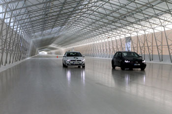 這里有滿(mǎn)山積雪,有結(jié)冰的湖泊,也有人工制冷測(cè)試間。這里有世界最大的室內(nèi)冰上直道,可用來(lái)測(cè)試剎車(chē)距離,也有長(zhǎng)度令人驚嘆的彎道,可測(cè)試車(chē)輛在冰雪路面的性能。這里總共有大大小小10個(gè)測(cè)試區(qū),分別用于不同的測(cè)試內(nèi)容,包括冰面抓力、雪路抓力、側(cè)抓力、縱向穩(wěn)定性、山路性能等。