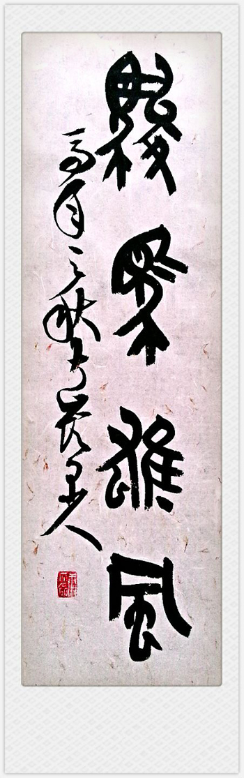 文磊喜書習書始于幼年。結緣筆墨,洇染春秋,紙上布陣,胸中點兵,雕鑿性情,累年不輟。既潛心臨摹歷代名碑名帖,汲取營養(yǎng),補氣固神;又側重從當代各家體式中尋求路徑,武裝自己,以求新變。文磊的書法作品,在植根于傳統(tǒng)沃土,以篆隸求古拙,以楷養(yǎng)骨力、以行釀神韻,以草放膽氣的同時,還對自己所處的生活環(huán)境敏于把握,善于提煉,細中養(yǎng)趣,細中求精。他從呼倫貝爾草原的遼闊奔放,大興安嶺山脈的雄渾豪邁,廣袤森林的沉靜幽深,千溪百合的澄明清冽中捕捉靈感,引爆激情,張揚個性,移山光水色,草行花姿于毫端紙上,也常于石頭的紋理間感受大自然留下的“枯筆”,也驚喜于煙云卷舒所形成的“飛白”。