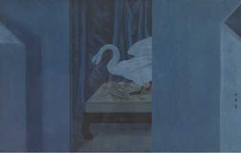 袁遠(yuǎn)來(lái)自杭州,2008年畢業(yè)于中國(guó)美術(shù)學(xué)院碩士學(xué)院,是近年備受關(guān)注的年輕藝術(shù)家之一。袁遠(yuǎn)畫(huà)作的畫(huà)面充斥著懷舊感,流露一種令人無(wú)以名狀的傷感及失落。他的筆觸細(xì)致中見(jiàn)變化,遠(yuǎn)看高度像真,近見(jiàn)藝術(shù)家感性的筆觸,充滿(mǎn)著情感的悸動(dòng)。袁遠(yuǎn)喜歡以室內(nèi)空間作為題材,在宏偉與廢墟的場(chǎng)景之間,抓著空間對(duì)觀者的心理投射,形成超現(xiàn)實(shí)的視覺(jué)感官經(jīng)驗(yàn)。《流動(dòng)之三》是其中獨(dú)特之作,畫(huà)面描述一個(gè)教堂的內(nèi)部,玻璃窗透著的并不是澄藍(lán)的天空,而是海洋的深淵,教堂猶如浸沒(méi)在汪洋之中,是一則令人深思的暗喻。