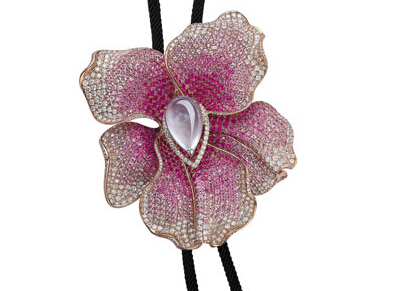 “蘭花系列”每片花瓣都經(jīng)過技藝匠工之手對貴重金屬進行反復(fù)的拉絲和打磨,與設(shè)計師Aster Ma不斷地琢磨花瓣與花瓣之間的層次,以及每片花瓣獨有的彎曲和褶皺呈現(xiàn)作品的綻放之美;作品系列中的寶石皆為匠工肉眼篩選,手工搭配以呈現(xiàn)漸變效果;匠工依據(jù)寶石顏色分類、排序,并編號鑲嵌,繁瑣的手工藝和寶石天然的顏色無可復(fù)制,使得“蘭花系列”成為獨一無二的至臻作品。