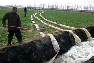 3月17日,河北省黃驊市西道安村組織村民抽取地表水澆灌受旱的小麥。今年河北省再次遇到嚴(yán)重春旱,目前,全省受旱耕地已達(dá)5000萬(wàn)畝。傅新春