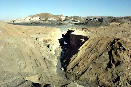 這是兩家礦企制造的人為決口(2008年10月15日攝)。新華社記者:張麗娜