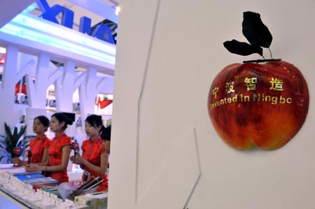 參加第105屆廣交會的中國企業(yè)著重在廣交會打造品牌價值,以提升企業(yè)品牌在海外的美譽度。圖為幾位工作人員在裝飾有“寧波智造”的展位前工作。本報記者:壯錦