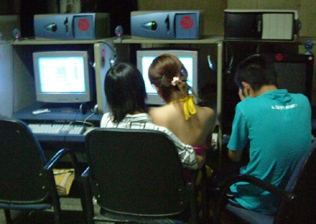 在重慶市一家網(wǎng)吧里,兩位網(wǎng)民在觀看網(wǎng)上電影。(資料照片) |