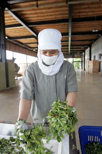 以開發(fā)高端旅游產(chǎn)業(yè)聞名的云南柏聯(lián)集團2007年進入瀾滄縣惠民鄉(xiāng),在景邁山腳建造了一座占地7000多平方米、極具現(xiàn)代氣息的“普洱茶莊園”;走進莊園,堪稱一次愉快的普洱茶工業(yè)之旅———車間嚴格按照萎調(diào)、殺青、揉捻、包裝等等十余道生產(chǎn)工序區(qū)分開,每個車間均配備了一流的機械設備,進行流水線操作,40余名工人必須穿上一體化工作服、洗三次手、酒精消毒才能獲準進入。