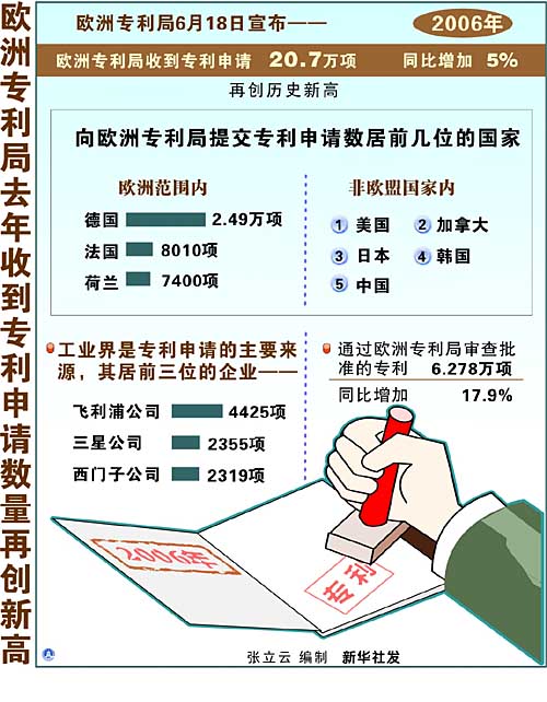 歐洲專利局去年收到專利申請數(shù)量再創(chuàng)新高