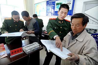 2006年以來,內蒙古先后有90多個邊防派出所在基層警務室中設立法律咨詢臺,為群眾提供法律咨詢服務,彌補了偏遠地區(qū)法律維權力量的不足。目前已累計接待外來務工人員和當?shù)厝罕姺勺稍兘f人次。