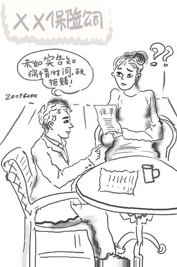 案例:劉先生腸胃不好,由于工作忙一直沒有去醫(yī)院檢查,每次肚子疼就吃一些胃藥來減輕病痛。2006年12月30日,他遇到了一位保險(xiǎn)公司業(yè)務(wù)員上門推銷保險(xiǎn),就購買了10萬元的重大疾病保險(xiǎn)。 在填寫投保單健康告知欄目時(shí),關(guān)于“最近5年是否曾有腹痛癥狀和最近有沒有服用藥物”詢問內(nèi)容,劉先生咨詢業(yè)務(wù)人員是否需要將自己的胃痛填寫上,業(yè)務(wù)人員問劉先生是否在醫(yī)院有病例證明,劉先生說沒有,業(yè)務(wù)人員就說沒事,讓劉先生不要填寫。劉先生當(dāng)時(shí)就按照業(yè)務(wù)人員的說法在此項(xiàng)勾選了“否”。 2008年1月,劉先生忽感身體不適,胃部奇痛,到醫(yī)院就診。醫(yī)生問詢劉先生之前胃部是否有過毛病,劉先生說胃疼史有4年并服用過胃藥,醫(yī)生將劉先生口述寫入了病例。經(jīng)過全面檢查,劉先生被確診為胃癌晚期。后診治無效,劉先生不幸病故,所花醫(yī)療費(fèi)共計(jì)14萬元。 事故發(fā)生后,劉先生家屬劉太太及時(shí)通過全國服務(wù)熱線報(bào)了案。經(jīng)審核,資料齊全,公司予以受理。但15個(gè)工作日后,保險(xiǎn)公司下發(fā)了拒賠通知單,拒賠理由為:被保險(xiǎn)人病例中本人陳述有4年胃痛史,早于投保時(shí)間,但被保險(xiǎn)人劉先生在投保時(shí)并未如實(shí)告知胃痛情況,未履行如實(shí)告知義務(wù),故保險(xiǎn)公司拒絕賠償。