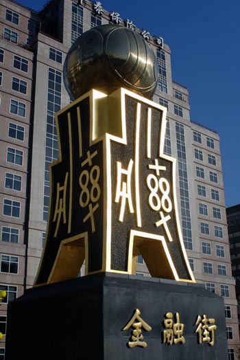 北京金融街,華泰保險(xiǎn)公司門前的金融街雕塑。新華社記者谷欣容