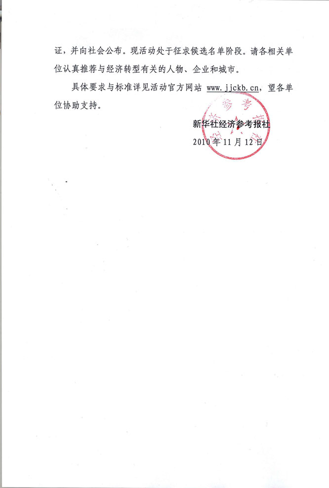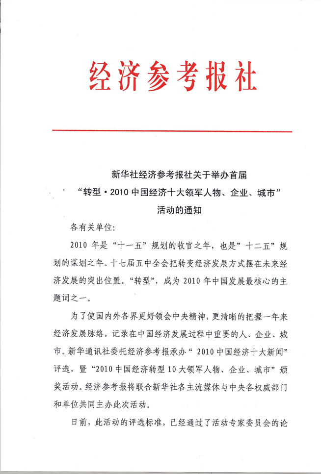 首屆“轉型2010中國經(jīng)濟十大領軍人物、企業(yè)、城市”活動通知