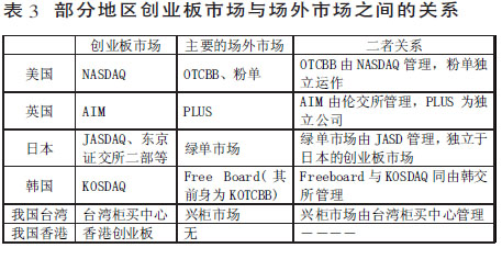 2.創(chuàng)業(yè)板公司是否退往場外市場,這取決于場外市場的發(fā)展程度、掛牌標準和定位。在退市去向的選擇中,創(chuàng)業(yè)板退市公司往往傾向于退至低層次的場外市場繼續(xù)交易。顯然,在場外市場掛牌,可以為投資者提供繼續(xù)交易的機會,而且公司如果符合創(chuàng)業(yè)板市場上市要求,還可以重新上市。但在實踐中,創(chuàng)業(yè)板公司是否退往場外市場,受到以下因素的影響:其一,場外市場的發(fā)展程度。例如,美國的NASDAQ本身就是在場外市場基礎上發(fā)展而來,目前的場外市場(OTCBB和粉單)成立時間長、容量大、交投較為活躍,投資機會多,因此從NASDAQ退往場外市場的公司數(shù)量較多;臺灣興柜市場的成立時間晚于柜買中心,發(fā)展歷史較短、市場容量還較為有限,因此退往該市場的公司數(shù)量也相對較少;而在香港,尚沒有場外市場,因此其公司從創(chuàng)業(yè)板退市后一般不再公開交易。 其二,場外市場的掛牌標準和信息披露要求。例如,美國的OTCBB對掛牌公司的股價、流動性、做市商數(shù)量和信息披露均有較高要求,NASDAQ退市公司如果不能達到這些要求,只能退至要求更低的粉單市場或者不再公開交易;臺灣興柜市場雖然對掛牌企業(yè)的財務指標沒有要求,但規(guī)定其掛牌企業(yè)必須有2名推薦券商為其做市,由于興柜市場的掛牌資源較為豐富,因此券商對退市公司的興趣不大。據(jù)統(tǒng)計,臺灣柜買中心自1997年以來的116家下柜(不包括升板)公司中,僅有不到10家進入興柜市場。日本綠單市場則要求公司進行詳細的信息披露,并要求投資者簽署《書面確認函》,以確認風險自負。 其三,場外市場的定位。如果該市場定位于為退市公司提供繼續(xù)交易,那么其接納的創(chuàng)業(yè)板退市公司就會較多。反之,如果低層次市場定位于主要為創(chuàng)業(yè)板和主板輸送上市資源,則接納的創(chuàng)業(yè)板退市公司就會較少。例如臺灣規(guī)定,凡進入柜買中心和臺交所之前,公司必須先在興柜市場掛牌6個月?梢,興柜市場的這一定位使其避免了成為退市公司主要交易場所的可能。而在美國OTCBB,其定位之一就是為從高層次市場的退市公司提供繼續(xù)交易的平臺,因此接納的退市公司數(shù)量也相對較多。 我們發(fā)現(xiàn),場外市場與創(chuàng)業(yè)板之間的隸屬關系(見表3),與它是否成為創(chuàng)業(yè)板退市公司的主要去向,這兩者之間并非一一對應的關系。如美國OTCBB,它由NASDAQ管理,但NASDAQ退市公司可以選擇OCTBB,也可以選擇粉單等其他市場;臺灣興柜市場由柜買中心管理,而僅有很少一部分退市公司從柜買中心進入興柜市場;韓國證交所旗下的FreeBoard則是主板和KOSDAQ大部分退市公司的交易場所。