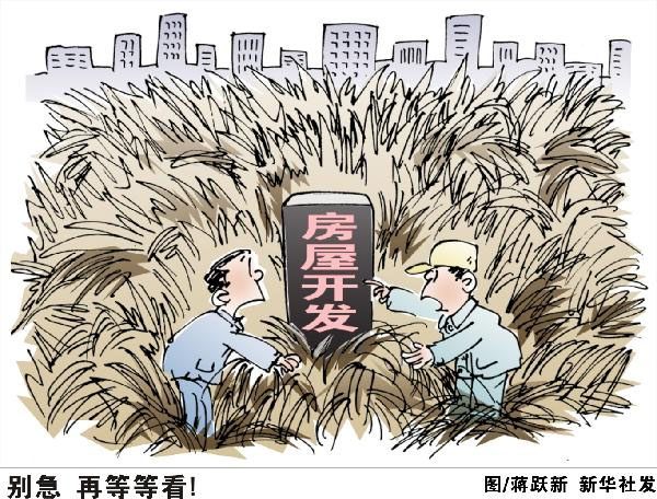 “撂荒”背后的原因是什么?數(shù)據(jù)顯示,盡管4月份遭遇“史上最嚴(yán)厲調(diào)控”,2010年上海、北京兩市賣地收入仍分別突破千億元大關(guān),同比漲幅將超過50%。土地升值幅度如此之大,無怪乎包括央企在內(nèi)的企業(yè)瘋狂圈地。這里面的邏輯很簡單:土地閑置越多,房子供應(yīng)越少,房價漲得越快;房價漲得越快,地價漲得越猛,囤地比蓋房更有利可圖。新華社發(fā)