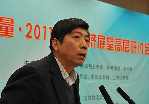 圖為商務(wù)部國際貿(mào)易與經(jīng)濟合作研究院院長霍建國在1月15日舉辦的“2011中國經(jīng)濟展望高層研討會”發(fā)言。 |