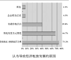 “指揮棒”效應(yīng)。66.7%的領(lǐng)導(dǎo)干部選擇“傳統(tǒng)發(fā)展方式的巨大慣性”。39.8%的領(lǐng)導(dǎo)干部選擇“資源價格長期扭曲,粗放型發(fā)展仍有一定市場”,說明資源要素價格長期壓低,無形中助長了高投入、高能耗、高污染、低效率行業(yè)的擴(kuò)張發(fā)展。6.5%的領(lǐng)導(dǎo)干部認(rèn)為“企業(yè)稅負(fù)過重,創(chuàng)新動力不足導(dǎo)致不愿轉(zhuǎn)變發(fā)展方式”。另有部分領(lǐng)導(dǎo)干部補(bǔ)充指出,“地方政府急功近利”、“各級黨政領(lǐng)導(dǎo)考核評價、提拔使用的機(jī)制不科學(xué)”等。