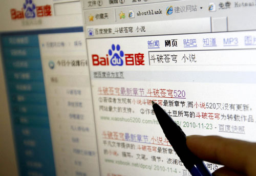 記者調(diào)查發(fā)現(xiàn),盛大文學(xué)將討伐的矛頭指向百度文庫,認(rèn)為這里已成為滋生盜版的溫床,盜版模式從單純盜貼文字內(nèi)容轉(zhuǎn)變?yōu)樾纬删W(wǎng)絡(luò)盜版文學(xué)利益鏈。百度則認(rèn)為,相對(duì)于收費(fèi)的盛大文學(xué),百度文庫提供了一個(gè)免費(fèi)的分享平臺(tái)。用戶上載分享的內(nèi)容存在盜版情況,但僅占文庫內(nèi)容的很少部分。記者 裴鑫 攝 |